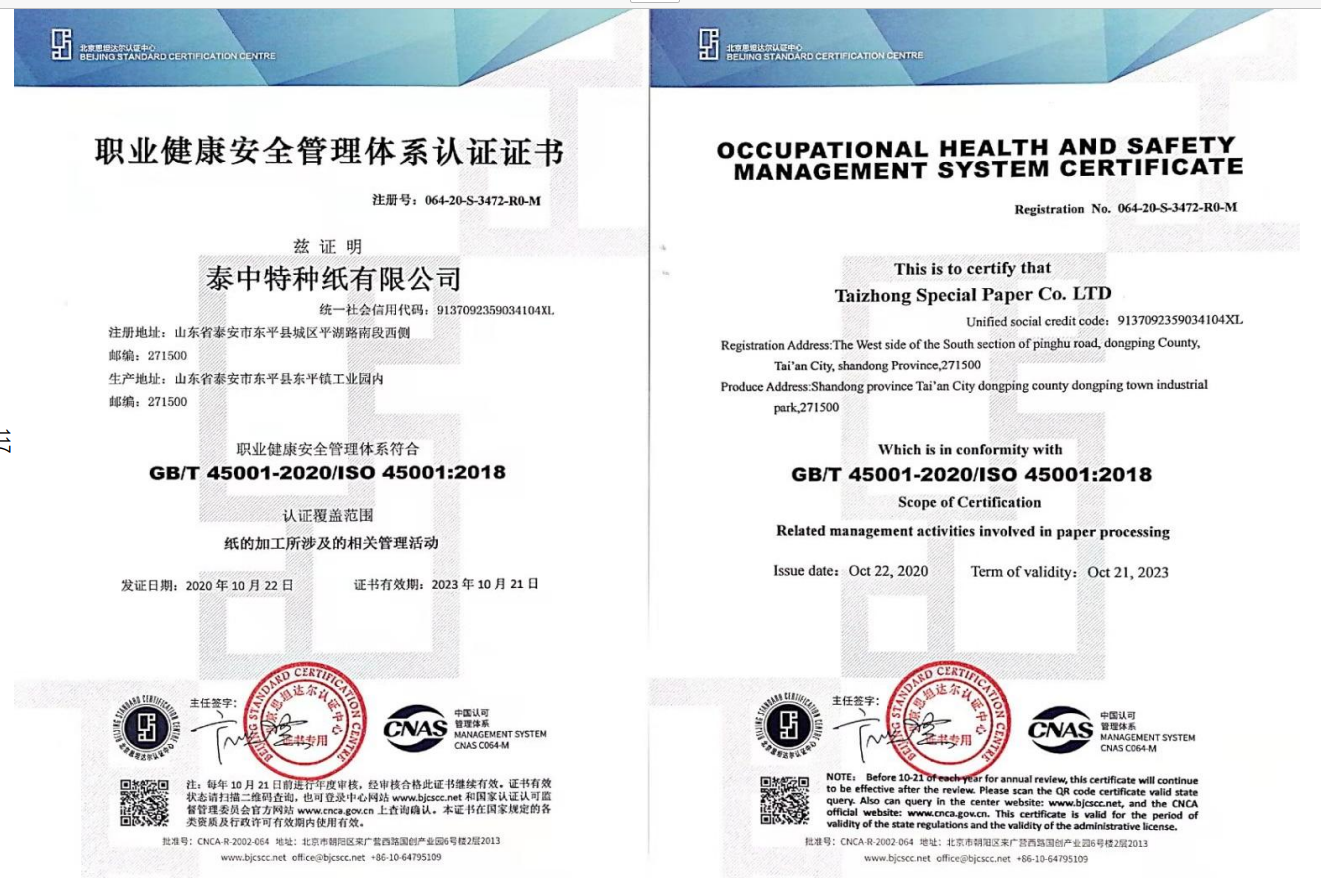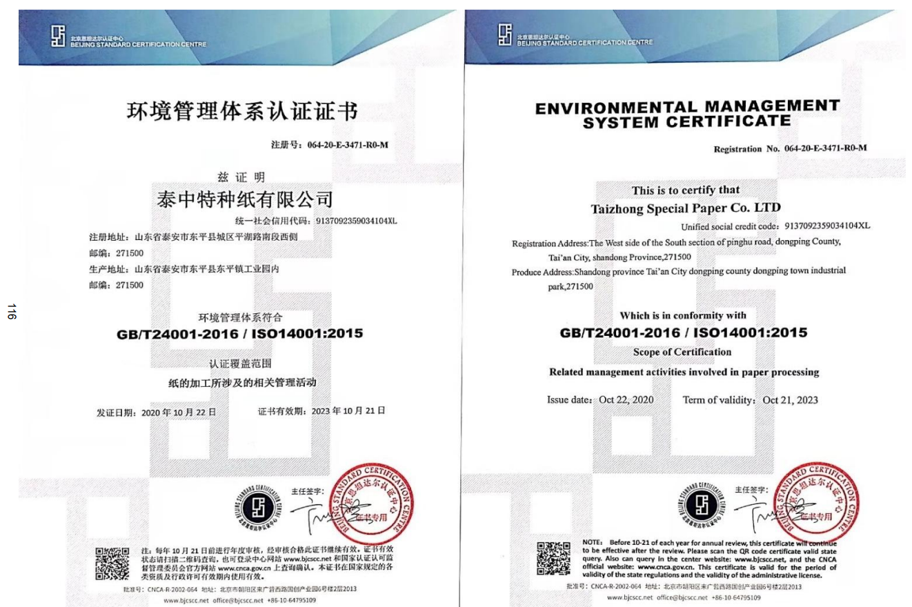 2021 年获得泰安市生态环境局排污许可证 管理体系认证证书